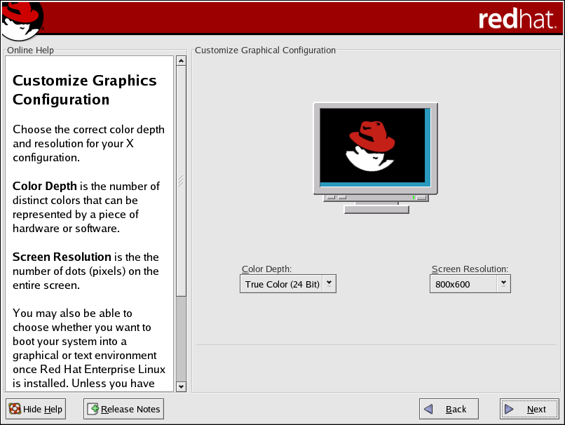 You can also choose whether you want to boot your system into a graphical or text environment once the installation is complete. Unless you have special needs, booting into a graphical environment (similar to a Windows environment) is recommended. If you choose to boot into a text environment, a command prompt (similar to a DOS environment) appears.