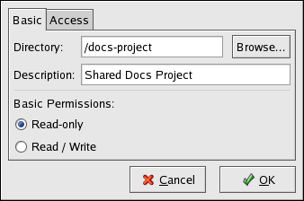 Basic Permissions — Whether users should only be able to read the files in the shared directory or whether they should be able to read and write to the shared directory.