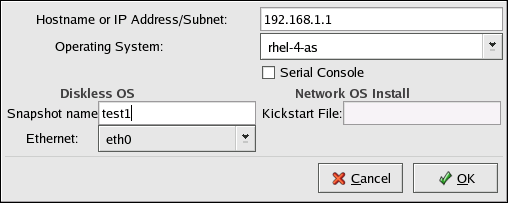 Hostname or IP Address/Subnet — Specify the hostname or IP address of a system to add it as a host for the diskless environment. Enter a subnet to specify a group of systems.