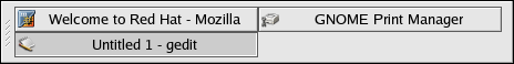 Next to the Workspace Switcher is the Taskbar. The Taskbar is an applet that shows you the titles of running applications on any one virtual desktop. This is helpful if you decide to minimize an application, as it seems to disappear from the desktop. Once it disappears, you can bring it back by clicking on its title in the Taskbar.