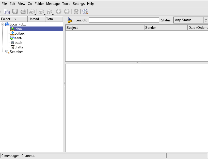 Before using KMail, you must configure it to send and receive mail. To run the configuration tool, select Settings from the KMail toolbar, and click on Configure KMail.