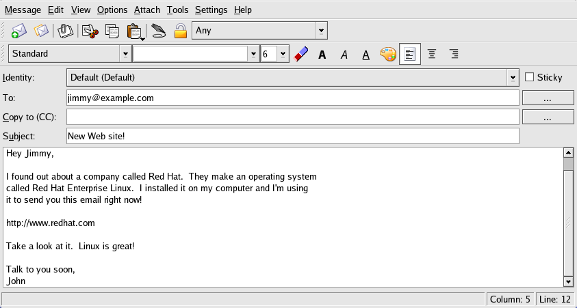 To compose a mail, click on the new message icon in the tool bar: